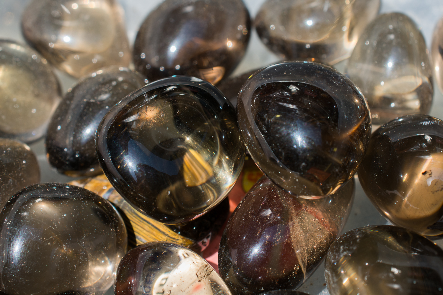 Rookkwarts onderscheiden van andere kwartsvarianten is eenvoudig: de kleur varieert van lichtgrijs tot bijna zwart, en de steen is altijd doorschijnend — nooit volledig ondoorzichtig zoals morion. Die kleur is het resultaat van aluminiumionen in het kristalrooster die over miljoenen jaren zijn blootgesteld aan natuurlijke gammastraling. Het proces is niet te versnellen of na te maken; stenen die kunstmatig bestraald zijn verliezen hun kleur bij blootstelling aan licht.