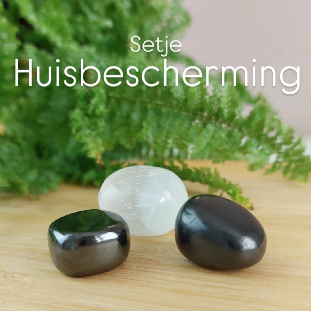 Dit edelsteen setje met Zwarte Toermalijn, Shungiet en Seleniet helpt je om negatieve invloeden buiten de deur te houden en je leefomgeving energetisch te zuiveren. Ideaal voor wie meer balans, veiligheid en bescherming in huis wil ervaren.