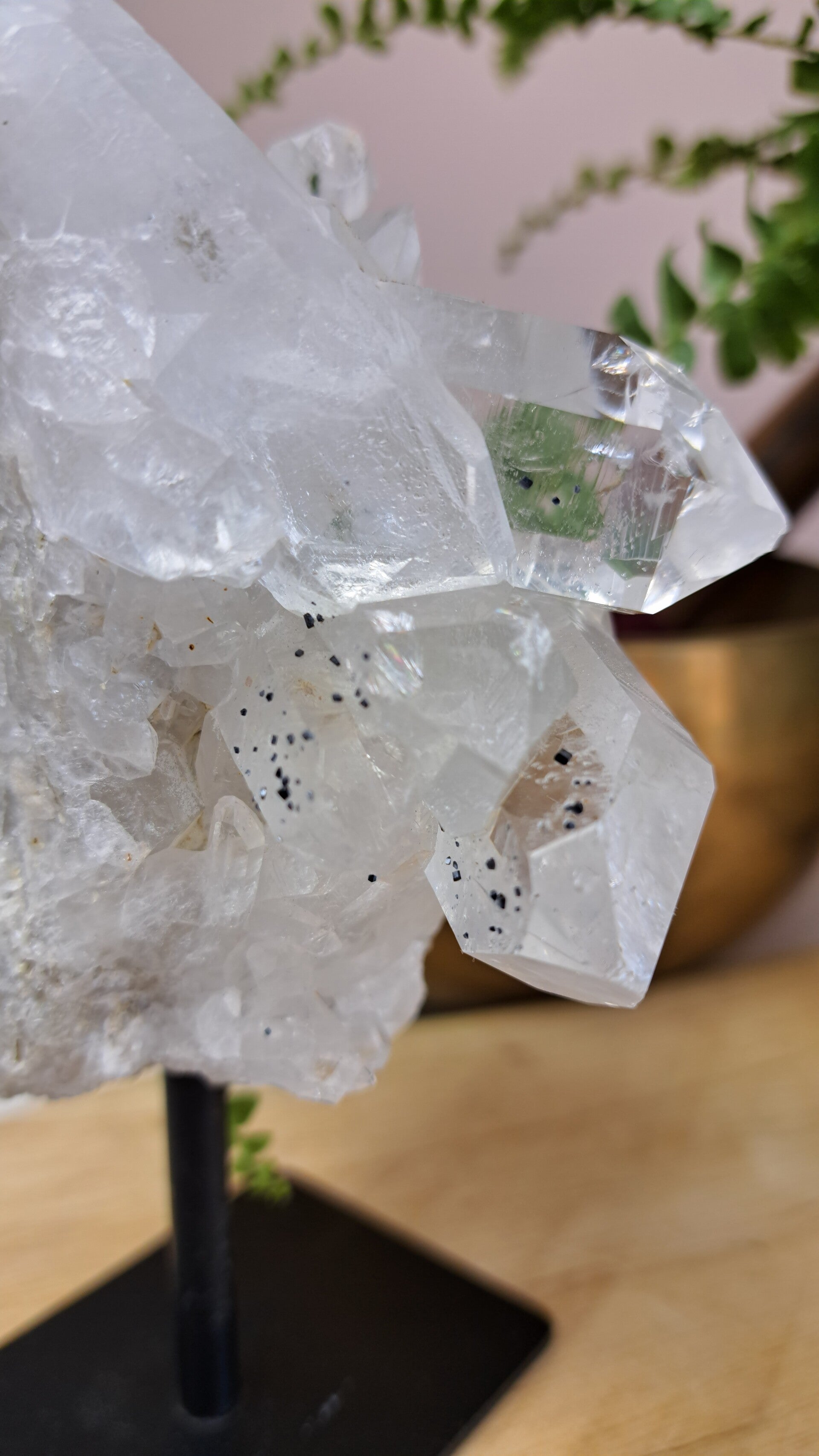 Bergkristal punten met Hematiet en Anatase op standaard nr. 21