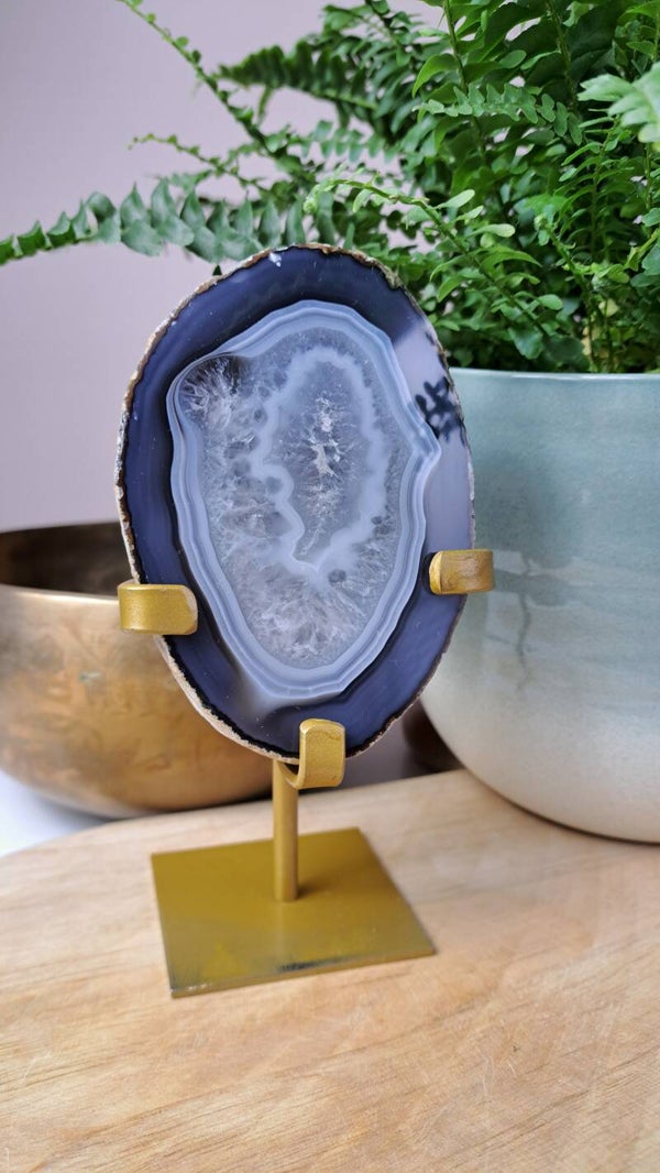 Prachtige schijf natuurlijke Agaat uit Brazillië. Mooie kristalisatie en prachtige kleurringen in unieke patronen en uitzonderlijke kleuren.