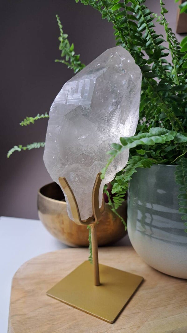 Grote punt Rookkwarts op standaard. Mooie zuivere kristal met inclusies. Maar liefst 1,5kg lichte Rookkwarts