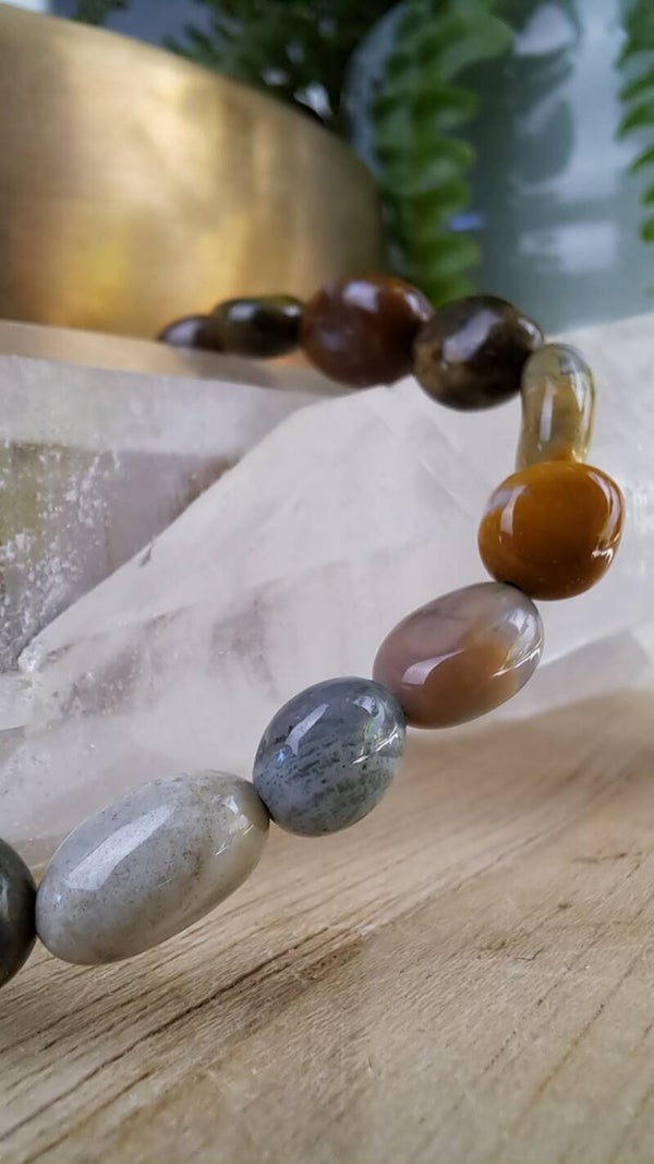 Deze armband is gemaakt van 100% natuurlijke stenen. De trommelsteentjes zijn A+ kwaliteit en volledig gepolijst.