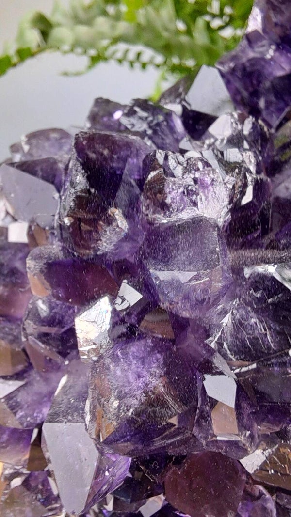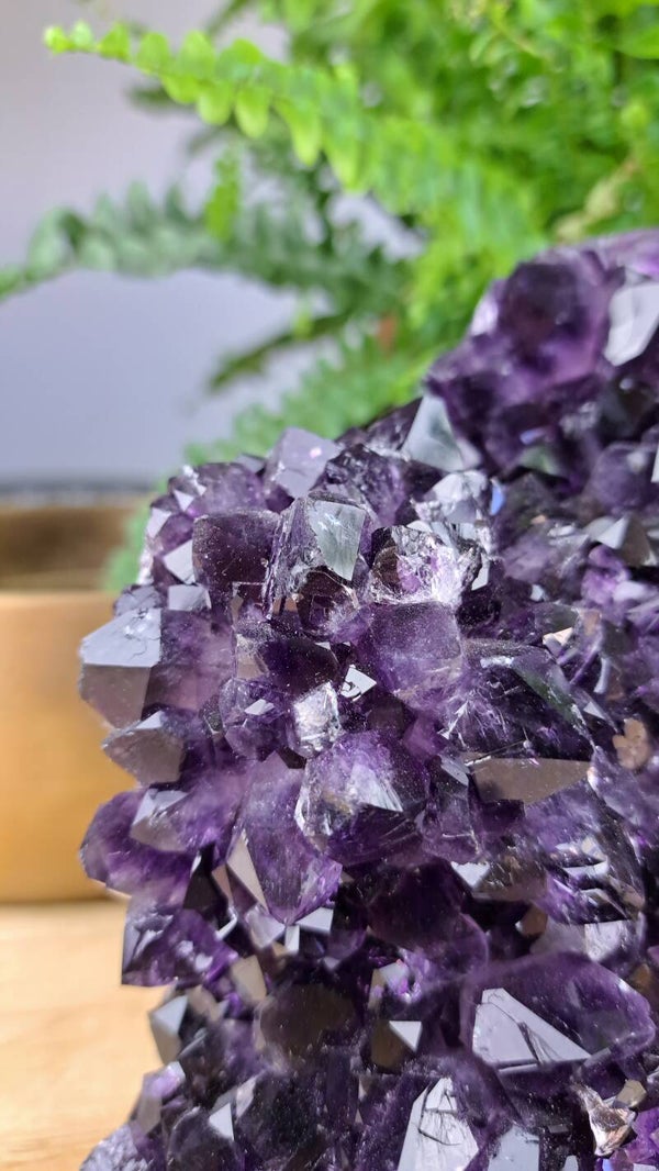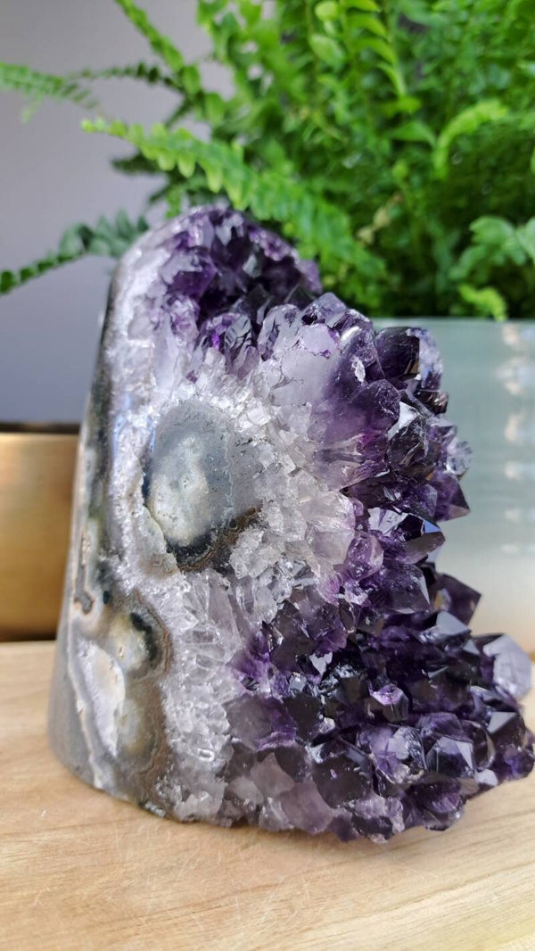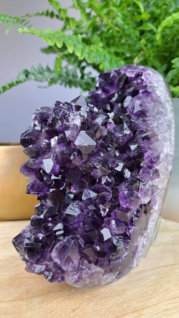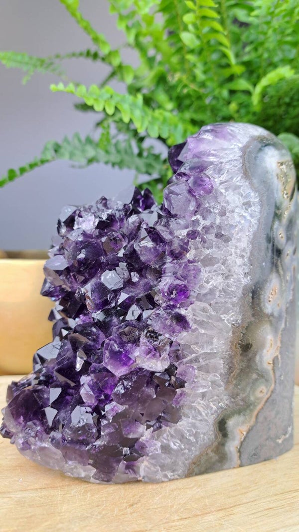 Mooie Amethist cut base met dieppaarse en kristallen in verschillende grootte. Dit stuk heeft een prachtig gepolijste rand, heeft een mooie grote flower van Amethistkristallen en kan zelfstandig staan. Een echt collectors item!!