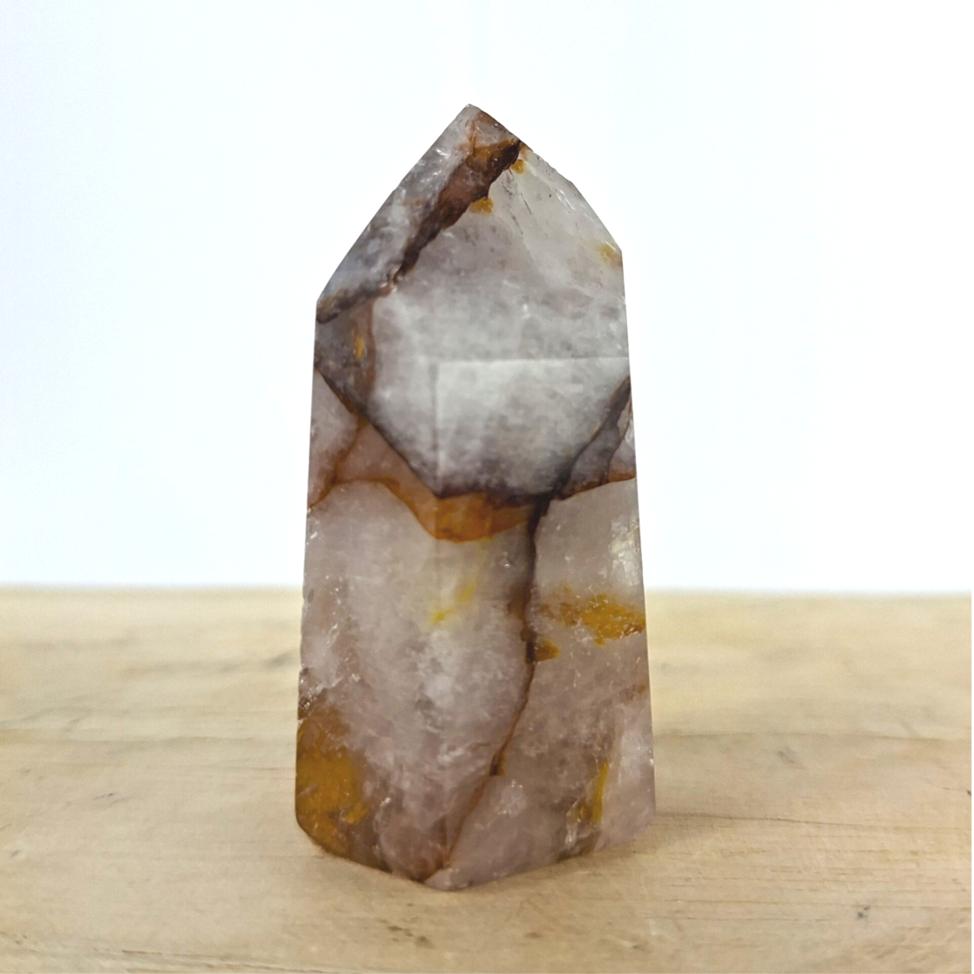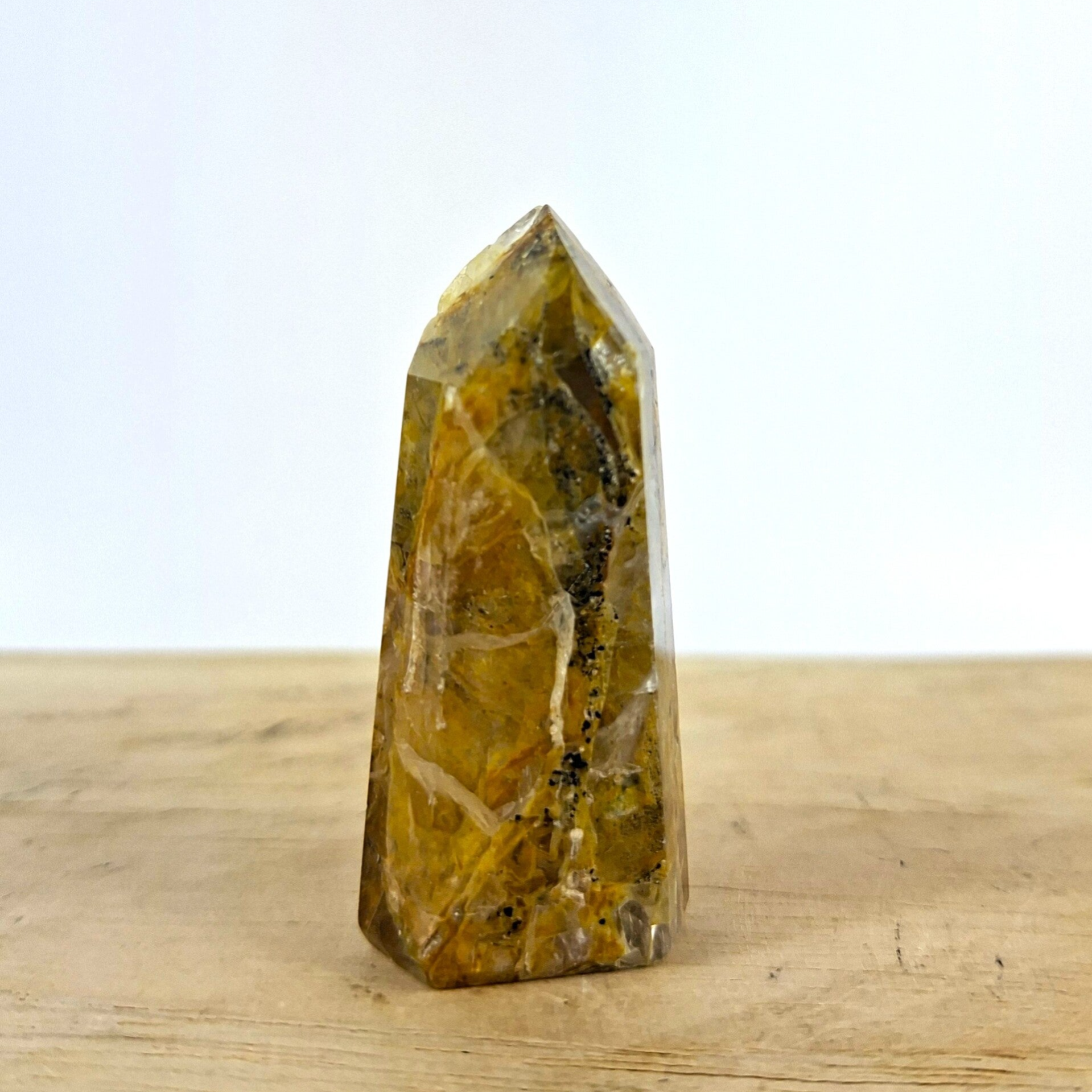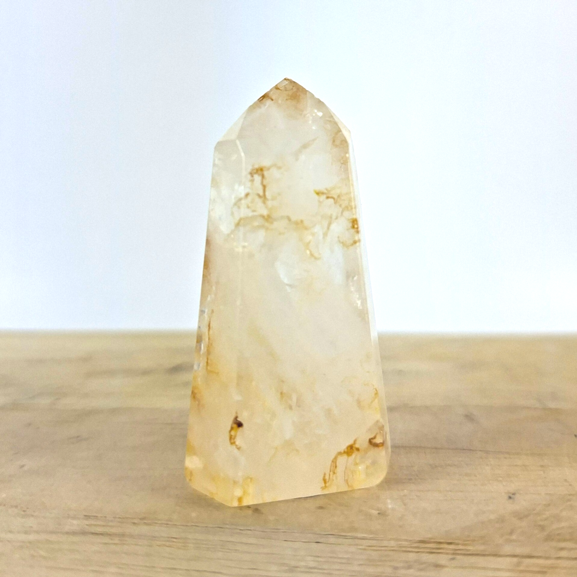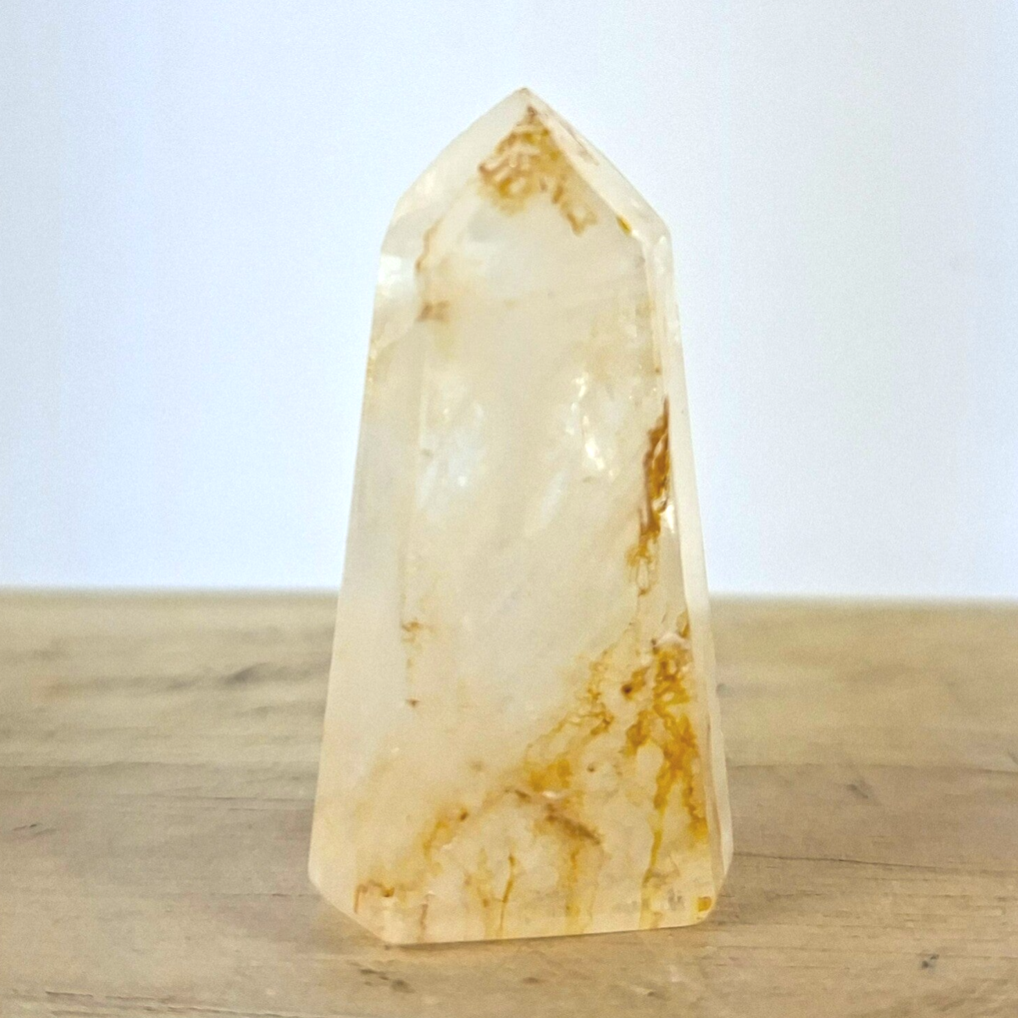 Prachtige Golden Healer puntjes, elk uniek in vorm en kleur. De onderkant is glad en stevig, de bovenkant is zorgvuldig geslepen in een punt. Zo komt de energie van de steen optimaal tot uiting en voelt ‘ie krachtig en helder aan.