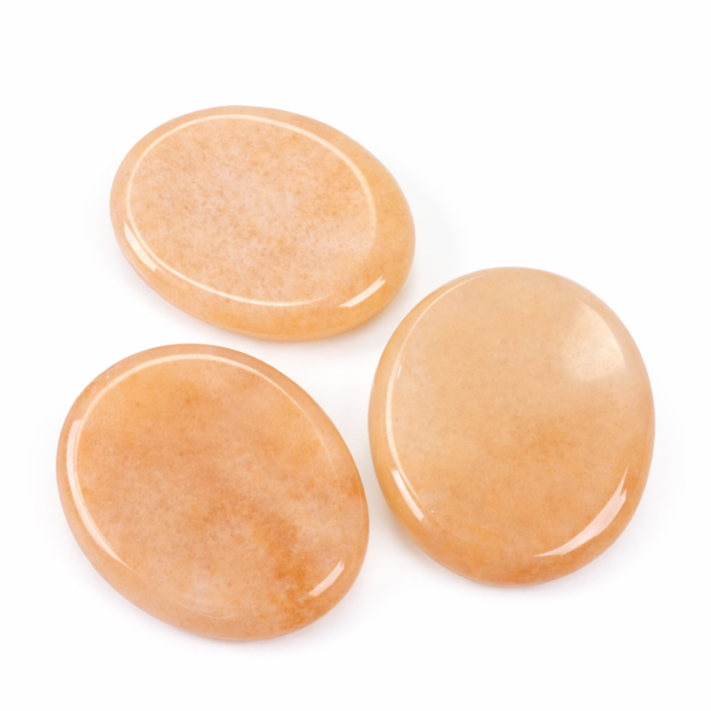 Deze Gele Aventurijn duimsteen is een glad gepolijste, ovale steen met een lichte inkeping waarin de duim comfortabel past. Door deze vorm ligt de steen prettig in de hand en is hij geschikt voor dagelijks gebruik.