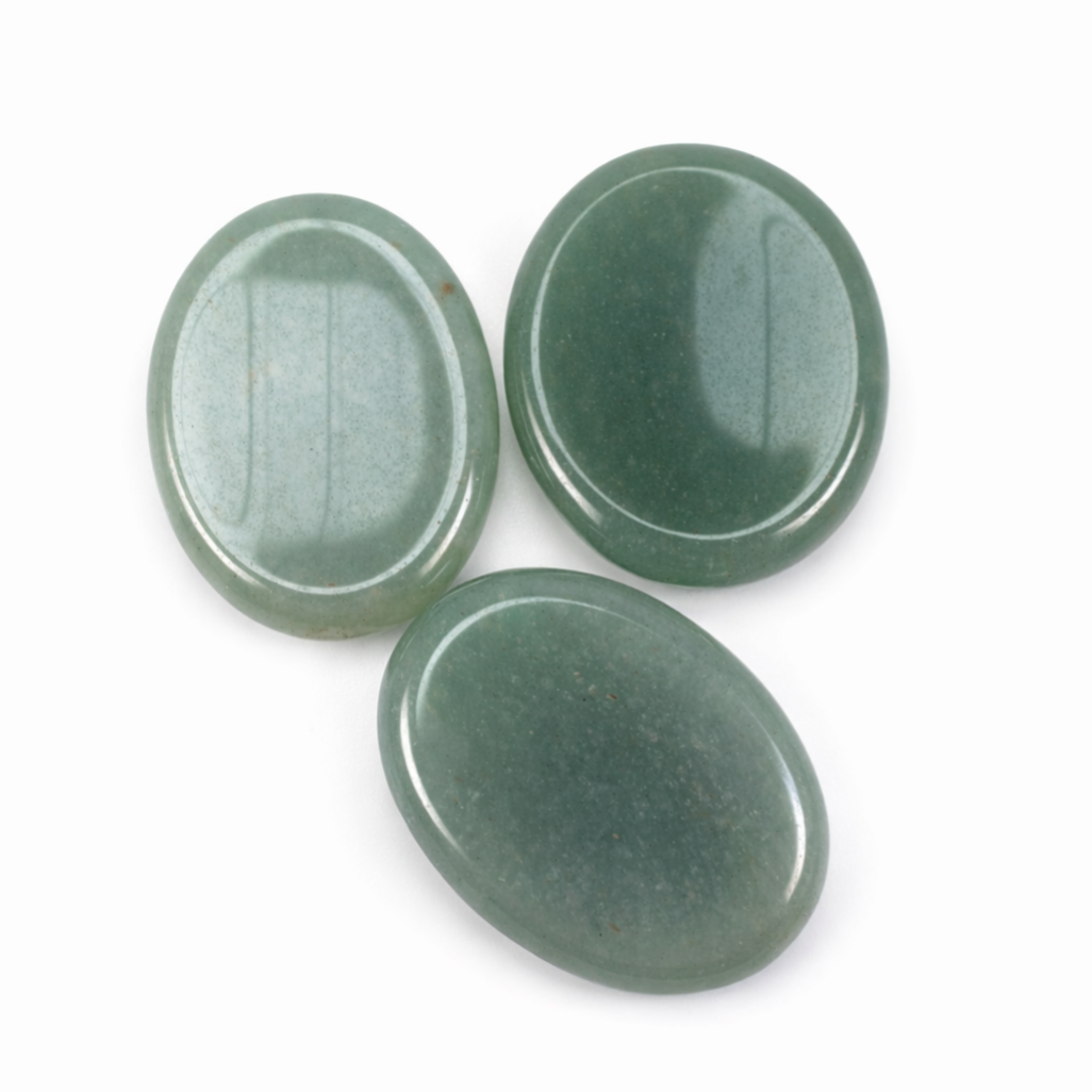 Deze Groene Aventurijn duimsteen is een glad gepolijste, ovale steen met een lichte inkeping waarin de duim comfortabel past. Door deze vorm ligt de steen prettig in de hand en is hij geschikt voor dagelijks gebruik.