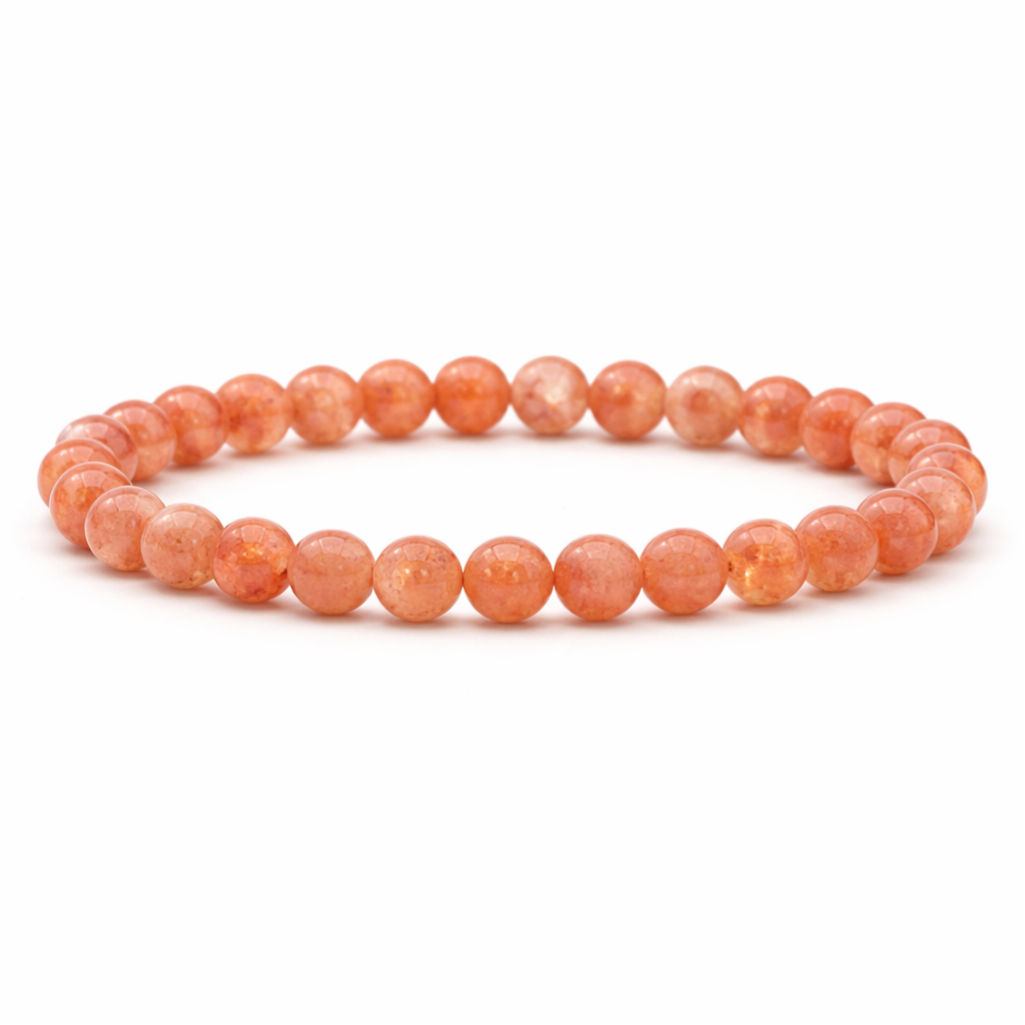 De kleur is dieproze oranje met schakeringen met Schiller-effect en regenbogen. Dat is precies wat Zonnesteen zo herkenbaar maakt. Omdat het een natuurproduct is, kan iedere armband subtiel verschillen in tint en tekening.